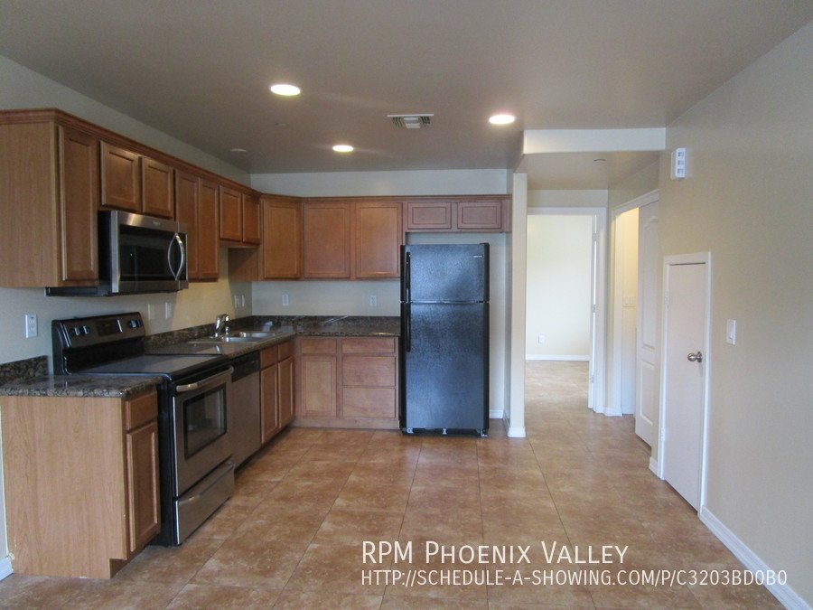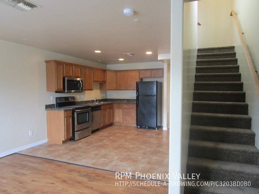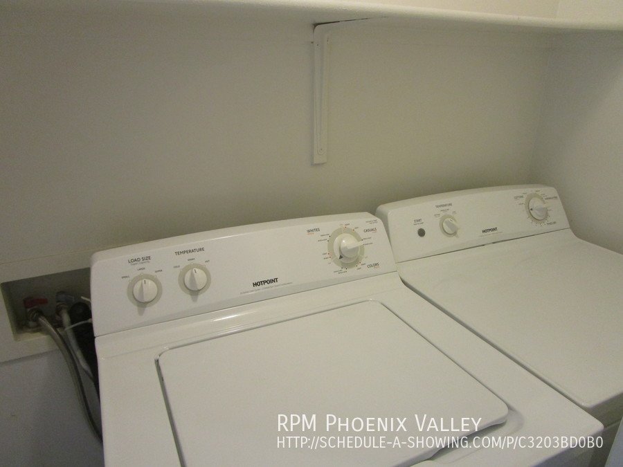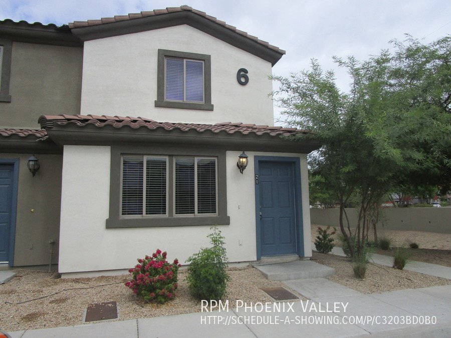 Move in Special Half off 1st Full month of rent!! Charming 3x2 Phoenix Condo, end unit with custom paint throughout! Cozy family room connected to the fully stocked kitchen with all appliances and updated cabinets! Laundry closet with washer and dryer included on the first floor. Split floor plan!! The downstairs primary suite features a walk-in closet, a full bathroom as well as an entrance to the fully enclosed patio. Second floor includes two spacious guest bedrooms with side by side closets and a full guest bathroom. Home is friendly to two neutered/spayed pets max with an additional $300 per pet deposit.