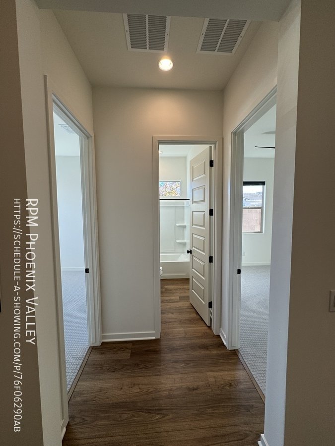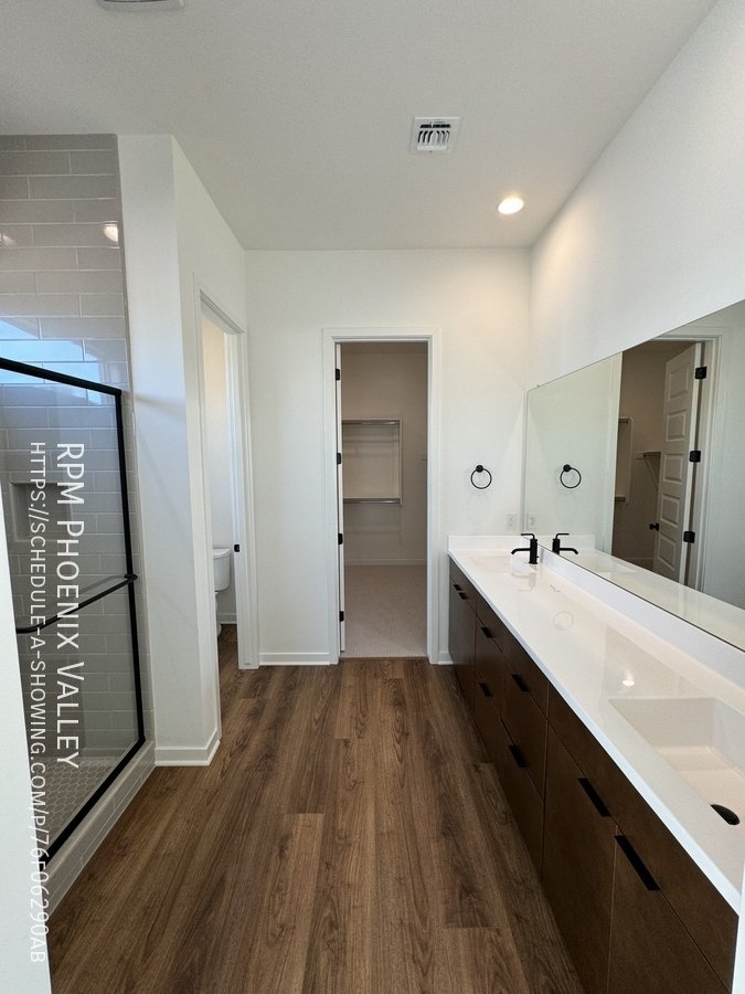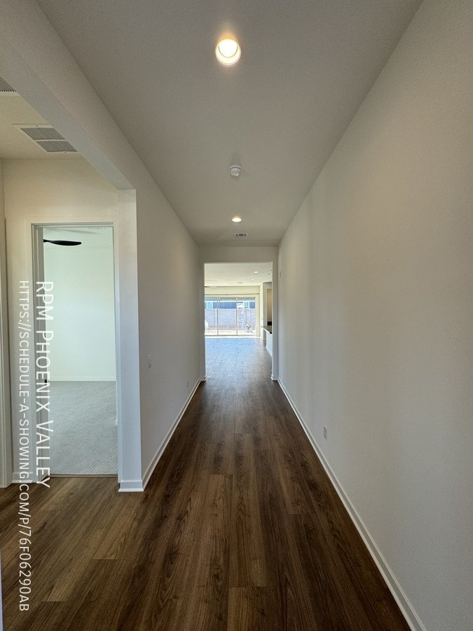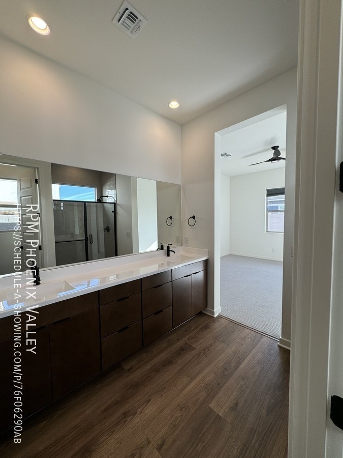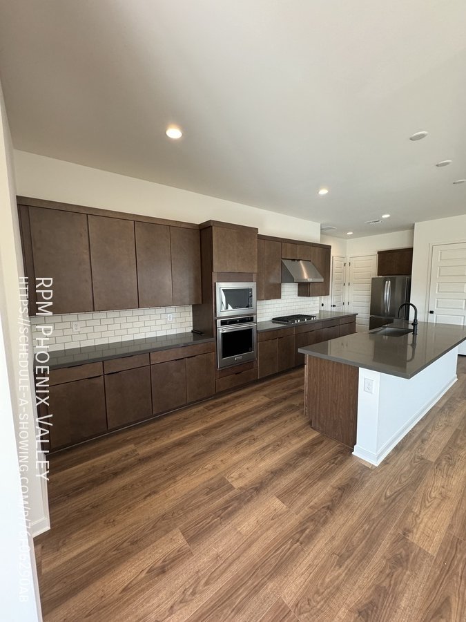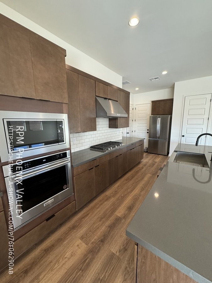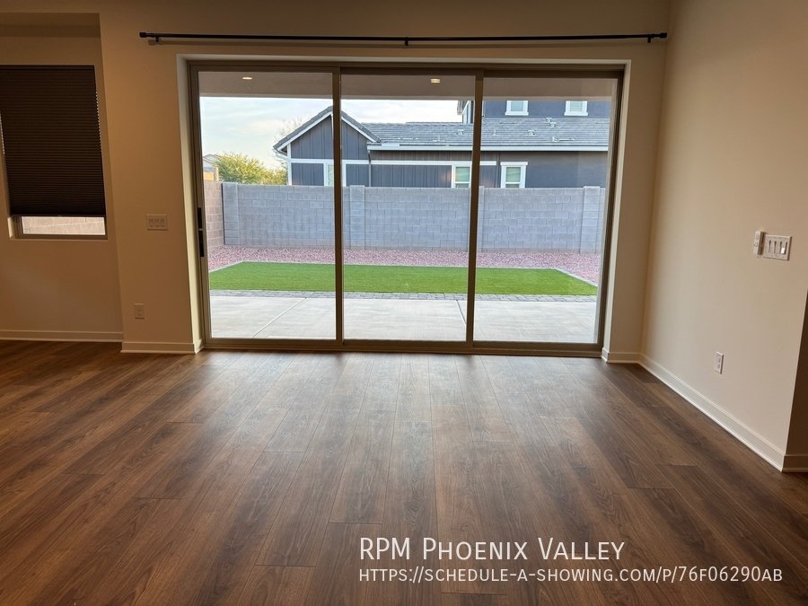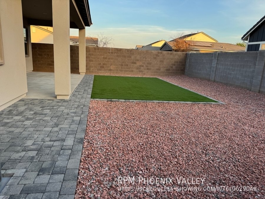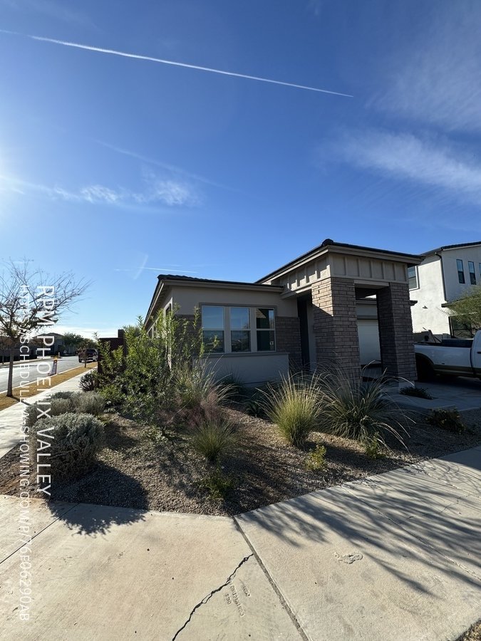 Corner lot home with carpet only in the bedrooms! Main living area offers an open concept den/living room/kitchen. Chef's gourmet kitchen with quartz countertops, upgraded cabinets, stainless steel appliances (including a GAS stove!) tile back splash and stainless steel farmer sink. 12 foot multi-pocket sliding door from the den to the backyard which will be finished mid January with pavers, rock and artificial turf. Split floor plan; two nice sized guest bedrooms with side-by-side closets share a guest very upgraded bathroom with quartz countertops and upgraded cabinets. Upgraded doors throughout! Primary suite includes a private bath with dual sinks, separate toilet room, walk in closet and gorgeous design tiled walk in shower! This Mesa community features biking/Walking Path; Children's Playground; Clubhouse/Rec Room; Comm Tennis Court(s); Community Pool; Near Bus Stop & a Workout Facility. Home is friendly to a max of two spayed/neutered pets with $550.00 per pet fee.