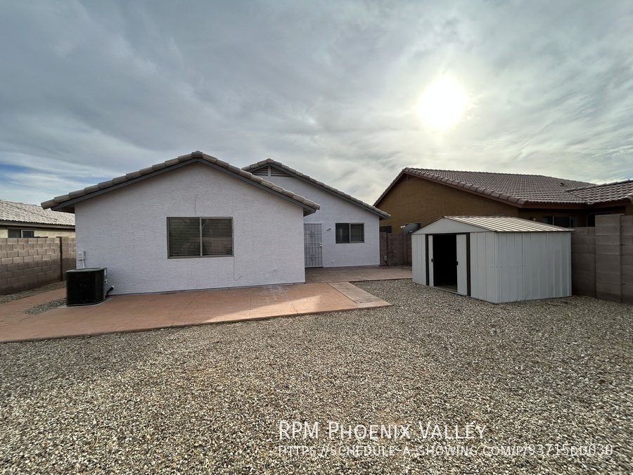 Warm and inviting 3 bed / 2 bath home is Goodyear home with all new interior and exterior paint! Home is conveniently located close to shopping, dining, and much more! Enjoy warm custom paint and NO carpet as home has beautiful tile flooring in the common areas and new Luxury Vinyl plank in the bedrooms. The large kitchen includes such appliances as a fridge, stove, and dishwasher with lots of counter and cabinet space. The primary bedroom includes a large walk in closet with shelving for added storage. Two guest bedrooms with side by side closets share the guest bath. The home features a large backyard with easy to maintain landscaping. Max of two spayed / neutered pets with additional $550 per per deposit.