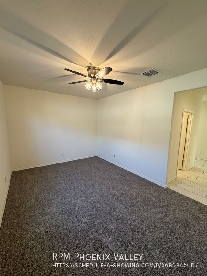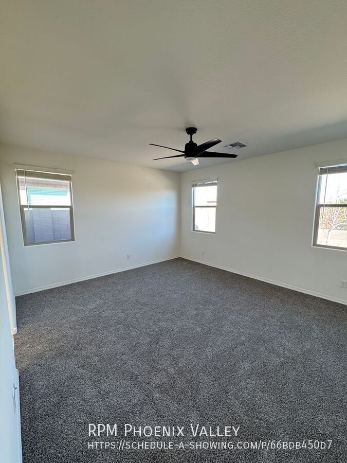 3 Bed / 2 Bath with all new carpet! This home provides modern finishes and an open concept! Step into luxury with 2 guest bedrooms with NEW carpet and a hall bath directly off of the entry. Across the hall you have your oversized laundry room and den which is perfect for a movie room! Then step into your open concept kitchen/living area. The kitchen provides beautiful granite counters and high end finishes will all appliances provided. The private primary is fitted with large windows letting in tons of natural light as well as NEW carpet. The primary bathroom features a separate shower and soak in tub with a large dual vanity. Oversized walk in closet. The backyard has a large covered patio area as well as lots of space for friends and family! Home is pet friendly to a max of 2 spayed/neutered pets with a deposit of $500 per.