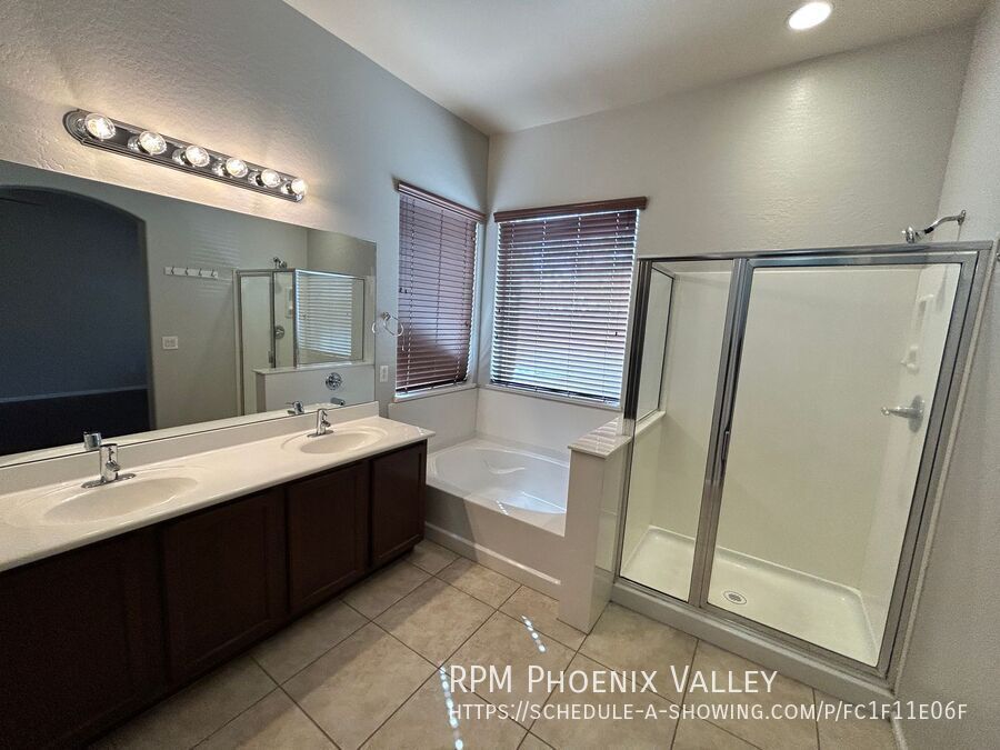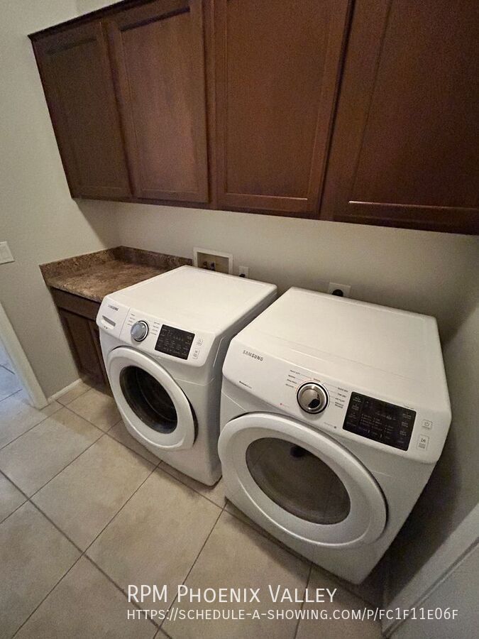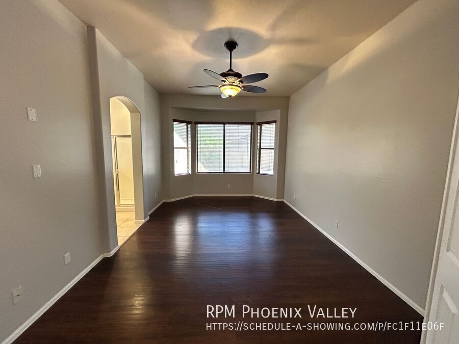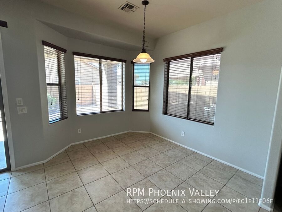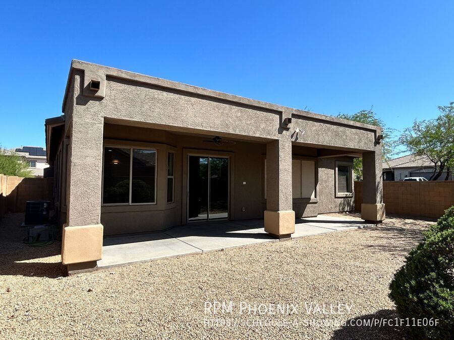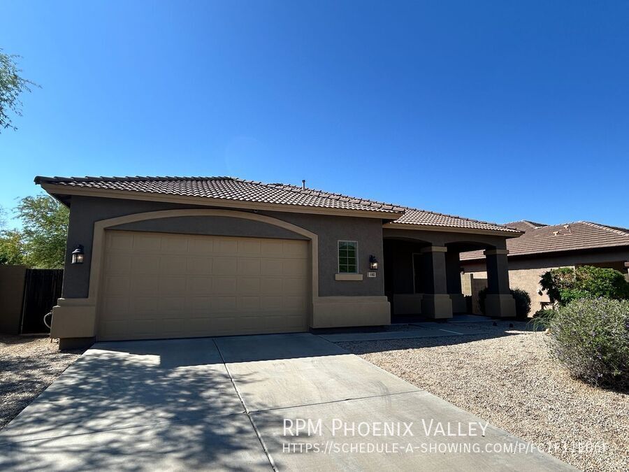 Custom grey paint throughout! Entry leads into formal den/dining room. Open concept den/kitchen/breakfast eat in kitchen area. Kitchen offers recessed lighting, all stainless steel appliances, island and pantry. Large laundry room with lots of cabinets & washer & dryer included! Grand double door entry into the primary suite with private bath including dual sinks, separate toilet room, stand up glass shower, separate garden style tub and walk in closet. Three nice sized guest bedrooms share a hall bath with double sinks as well. 2.5 garage so lots of xtra storage space! Easy to maintain desert landscaping front & back. Home is friendly to a max of two spayed/neutered pets with $350 per pet deposit. Community offers Biking/Walking Path; Children's Playgrnd; Clubhouse/Rec Room; Comm Tennis Court(s); Community Pool; Community Pool Htd; Workout Facility.