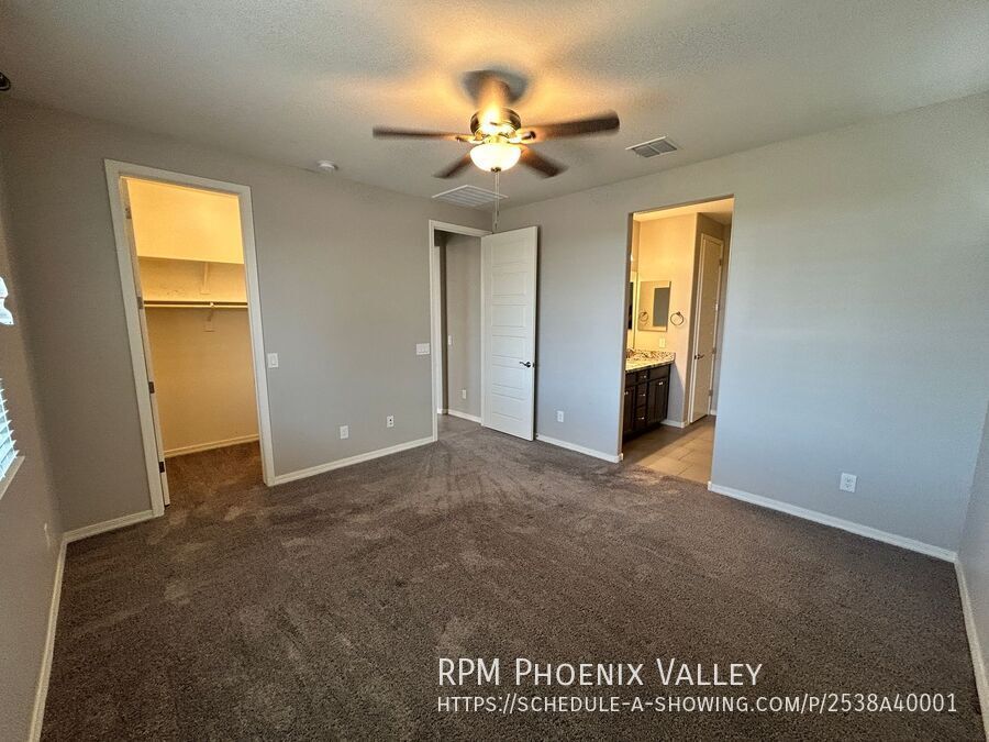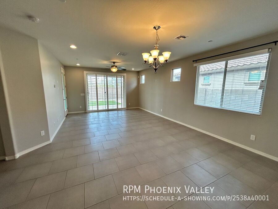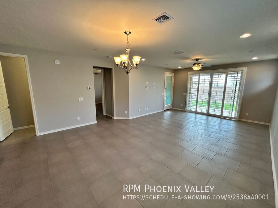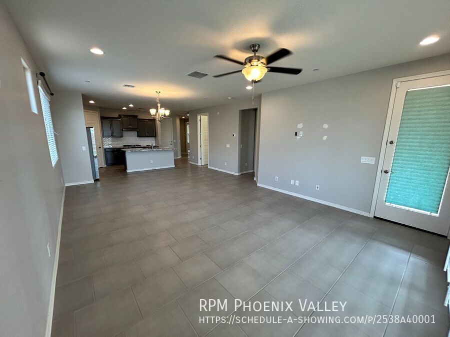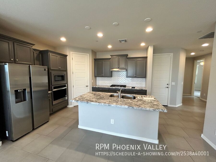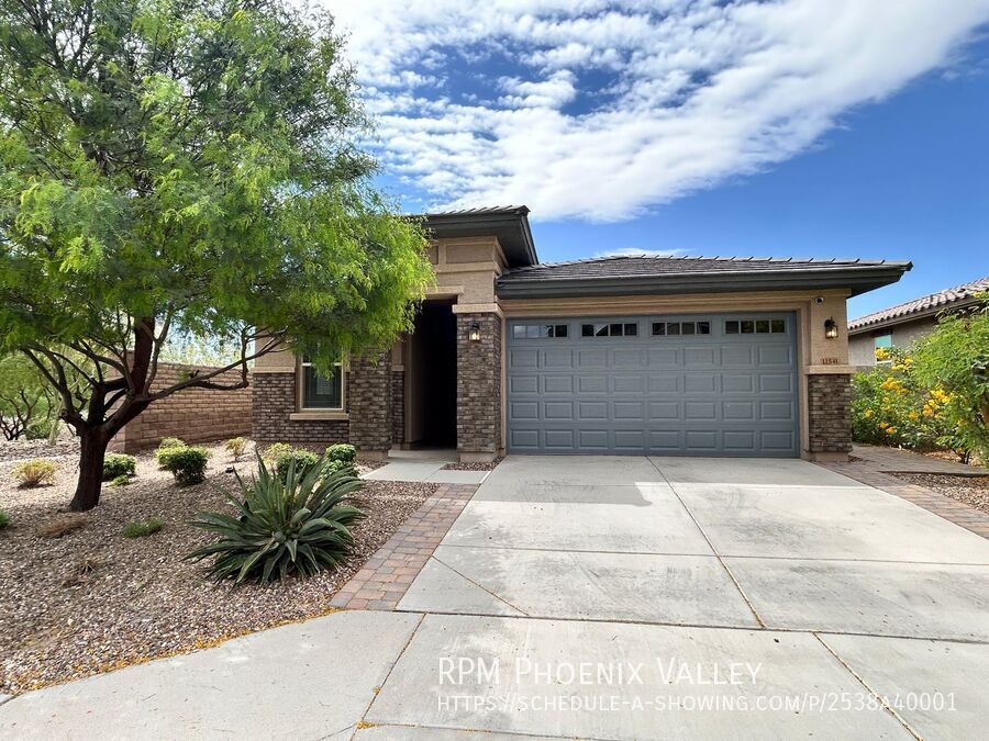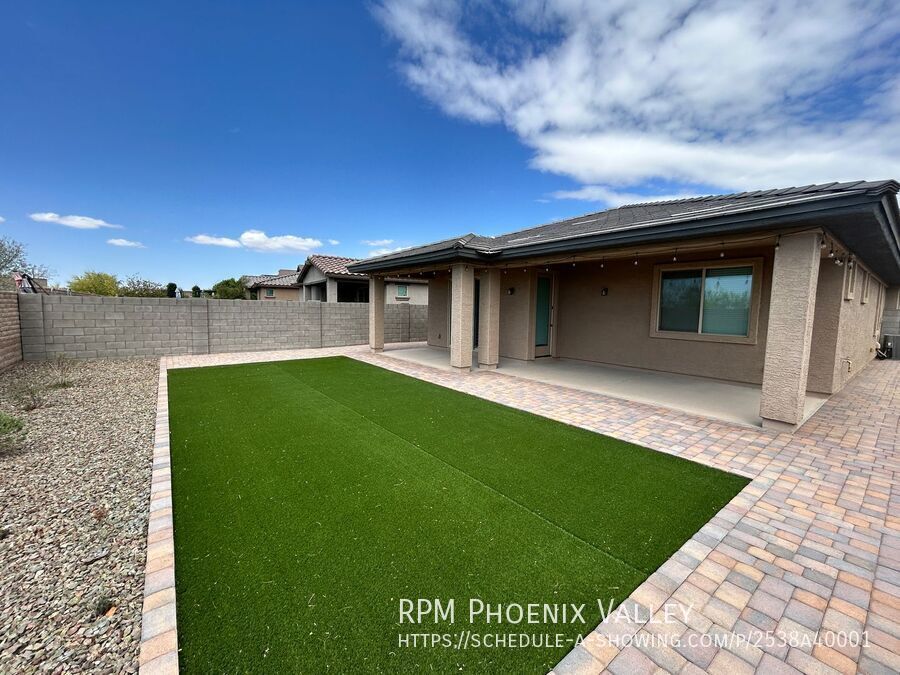 Warm and Beautiful 3 beds, 2 bath single level home with open concept living and Split floor plan. The open floorplan also includes a stunning kitchen where the huge island, lots of cabinets, large pantry, all stainless-steel appliance and opens out to the dining and living room great for easy entertaining. Two guest bedrooms at the entry feature side by side closets and share the guest bathroom. Primary bedroom is at the rear of the home with a private ensuite that includes a walk-in shower dual vanity and a large walk-in closet. The home is situated on a large corner lot with desert landscaping & backyard comprised paver, turf and easy to maintain plants of a covered patio. Two car garage with an electric door opener, home is friendly to a max of two neutered/spayed dogs max with an additional $550 per pet fee.