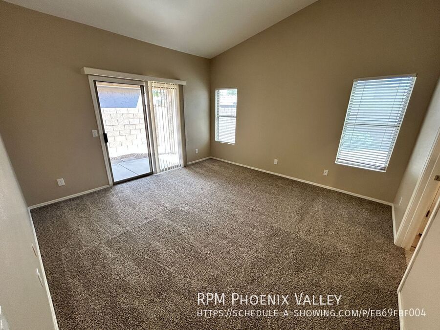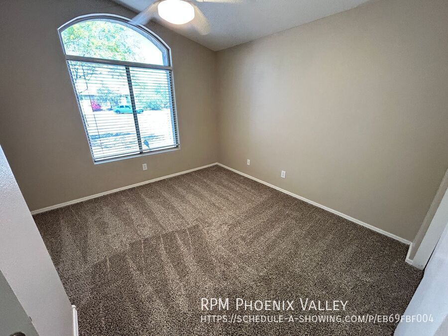 Single story 3 bedroom + enclosed den, 2 bath Desert Ridge home in cul-de-sac. Main common area includes *NEW* custom paint, *NEW* wood plank flooring in the large living room/dining room open area which leads into the upgraded kitchen with granite countertops and ALL stainless steel appliances! Fully enclosed den with *NEW* custom paint + *NEW* wood plank flooring. Split floor plan. Spacious primary with vaulted ceilings, *NEW* custom paint, *NEW* plush carpet, walk in closet, private bathroom with dual sinks and tiled shower. Two guest bedrooms on the other side with *NEW* custom paint + *NEW* plush carpet share a hall bath with granite countertops. Laundry closet with washer/dryer hook ups. Easy to maintenance desert landscaping. Home is friendly to a max of two spayed/neutered pets with $550.00 per pet fee.