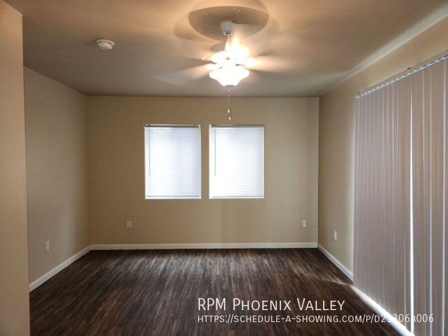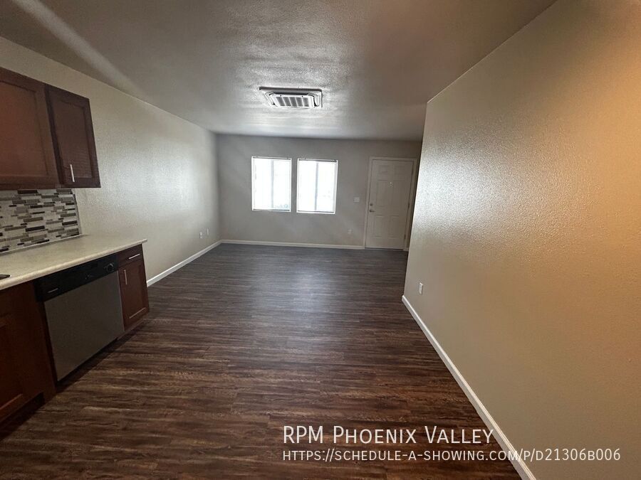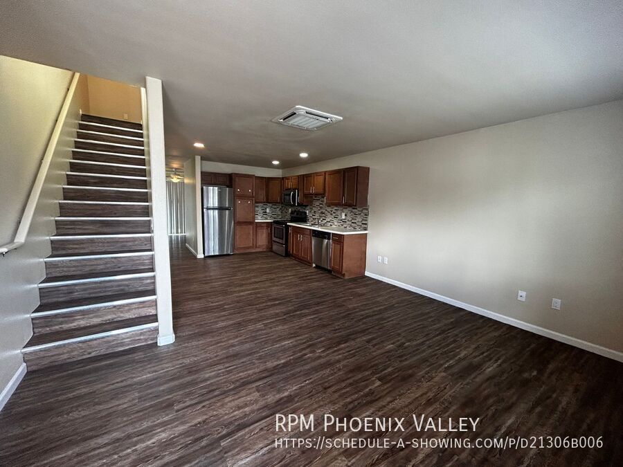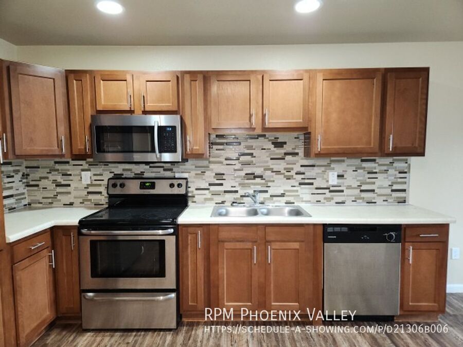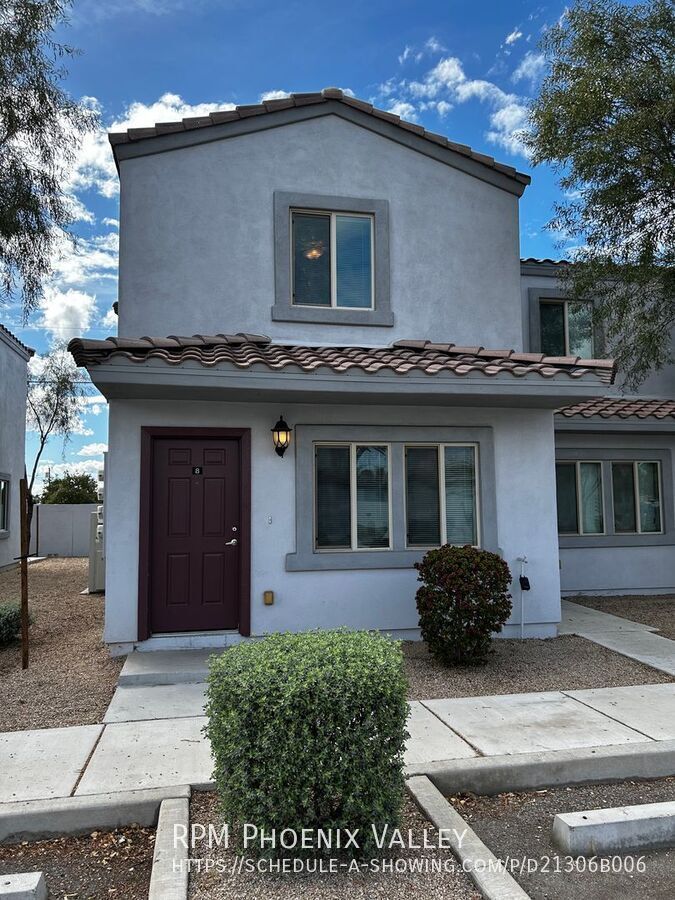 This end unit has it all warm custom paint throughout and updated Wood look planking downstairs & on stairs. Unit is conveniently located near the I-17 and L-101, with all appliances included!!! Fully stocked eat in-kitchen with nice black splash and stainless-steel appliances, a convenient half bath as well as a cozy family room. The second floor features a master bedroom with its own private bath and two good sized guest rooms that share a full guest bathroom. Laundry closet with washer and dryer included, home is pet friendly to two spayed/neutered pet max with additional $350 per pet fee. Water/sewer/trash is included.