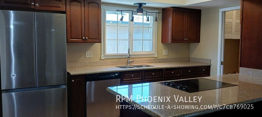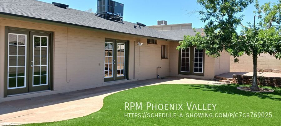 From the moment you walk in, you'll notice the craftsmanship—gorgeous updated wooden doors throughout the home add warmth and character in every room. Formal dining/kitchen and kitchen is equipped with updated fixtures, peninsula with breakfast bar, granite countertops, sleek appliances, a microwave/oven wall combination, flat top stove and breakfast bar. Formal living room leads to back yard which is designed with low maintenance in mind, with lush turf, mature trees for shade, and a paved seating area. Inside, down the hall, you'll find three well-proportioned bedrooms, each offering ample closet space that share a guest bath with two sinks. The primary bedroom has a remodeled shower and French door exit that leads to the spacious backyard with extended seating area. Additional updates and attention to detail make this home a truly special place to live. Home is friendly to a max of 2 spayed/neutered pets with $350 per pet fee.