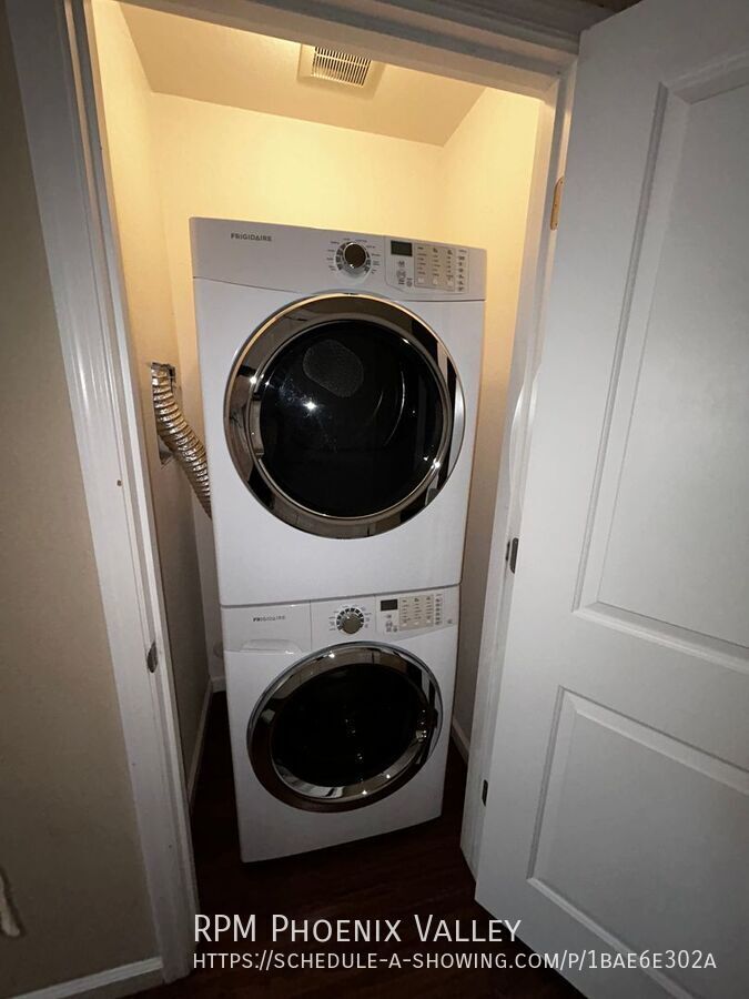 Move in Special $500 of 1st Full month of Rent! Awesome location near L-101 & I-51 Freeways. First floor includes a large den, half bath with pedestal sink & tile back splash, stacked washer & dryer and an eat in kitchen. Kitchen features decorative backsplash tile, recessed lighting and all stainless steel appliances! Wood plank flooring & tile throughout so NO carpet. Two nice sized bedrooms upstairs; one with a large three door closet. Upstairs guest bath also with decorative tile back splash. Home is friendly to a max of two spayed/neutered pets with $350 per pet fee. Rent includes water/sewer/trash.