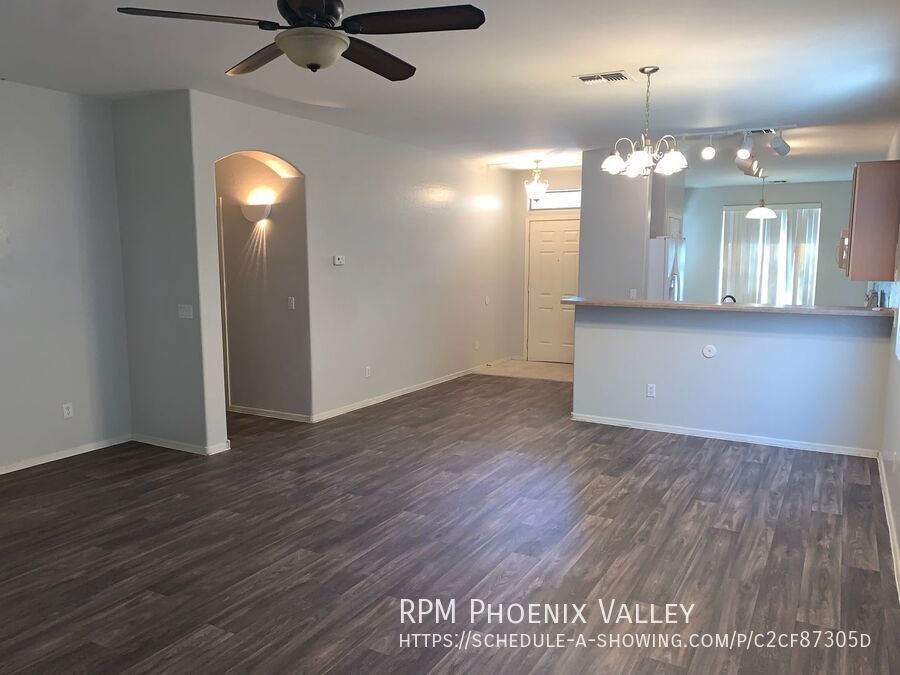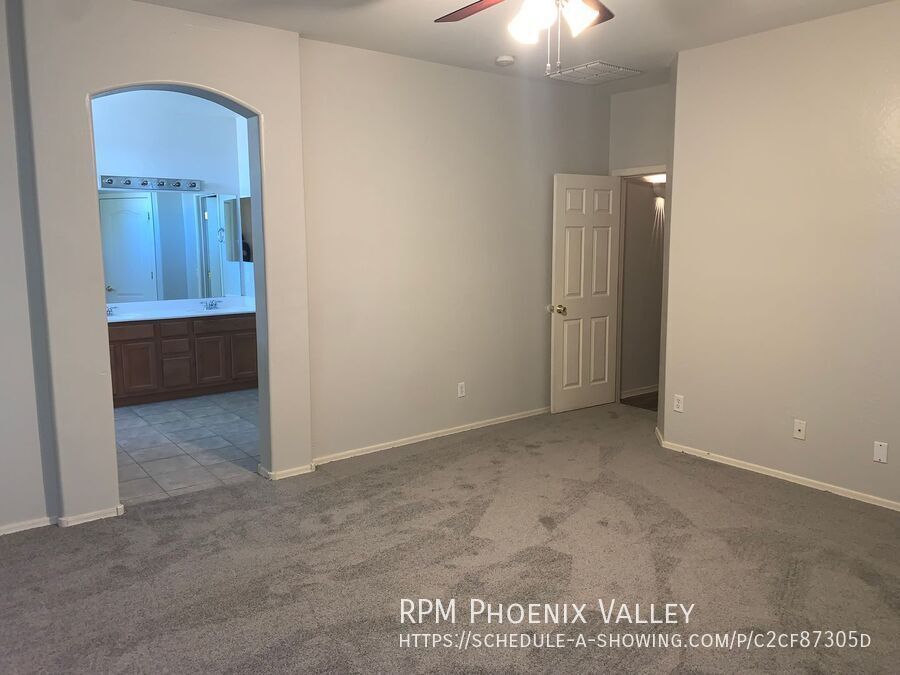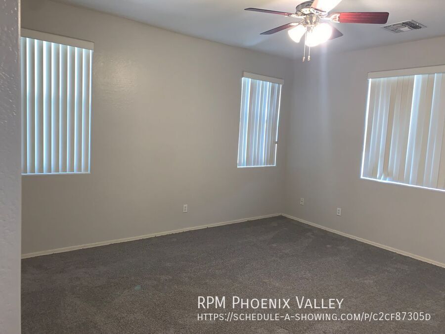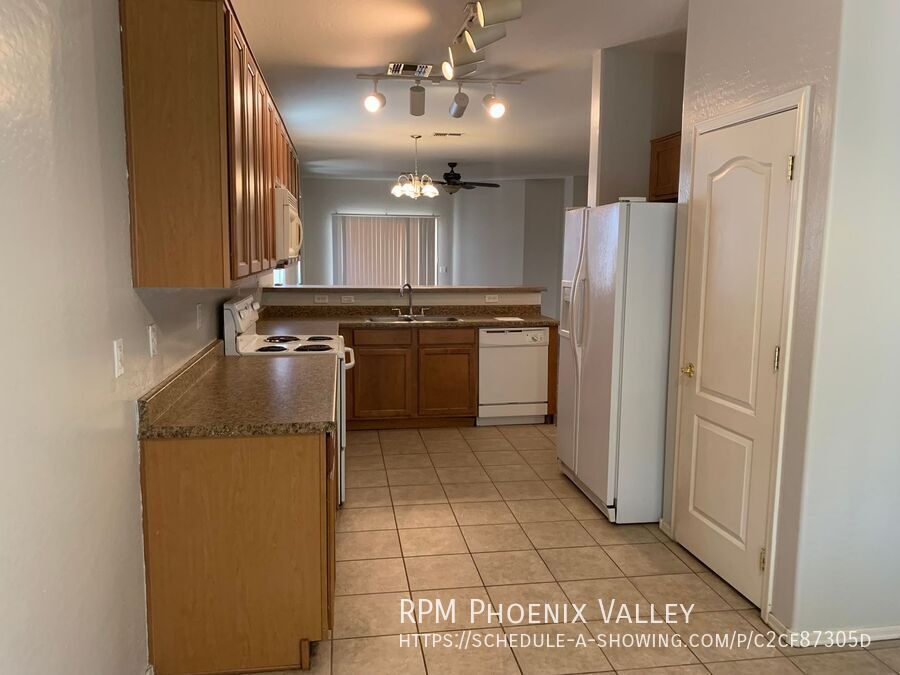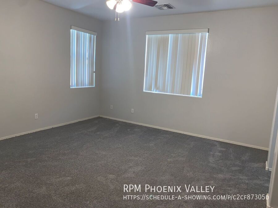 *Move-In Special! $500 Off First Full Month’s Rent!* Very nice 4 bedroom / 2 bath single level home in Trails at Amber Ridge with warm custom paint gray paint! The Eat-In Kitchen includes all white appliances, pantry and lots of cabinet space and looks into the open concept great room making it perfect for entertaining. Just down the hall you have 3 guest bedrooms that share the guest bath. At the end of the hall you have the Large Primary suite which includes dual vanity sinks and a large walk-in closet. 2 car garage with opener, nice size backyard with a covered patio. Max 2 spayed / neutered pets with additional $550 per pet deposit.