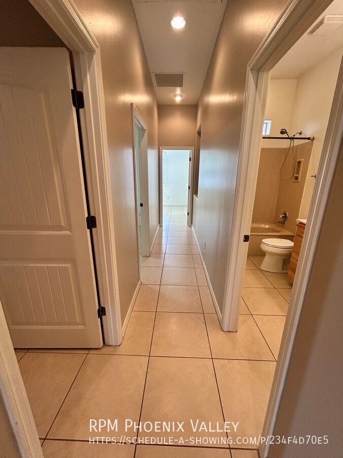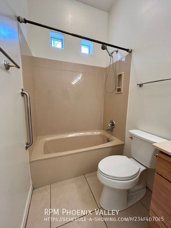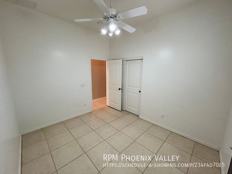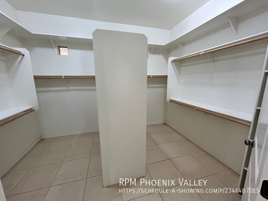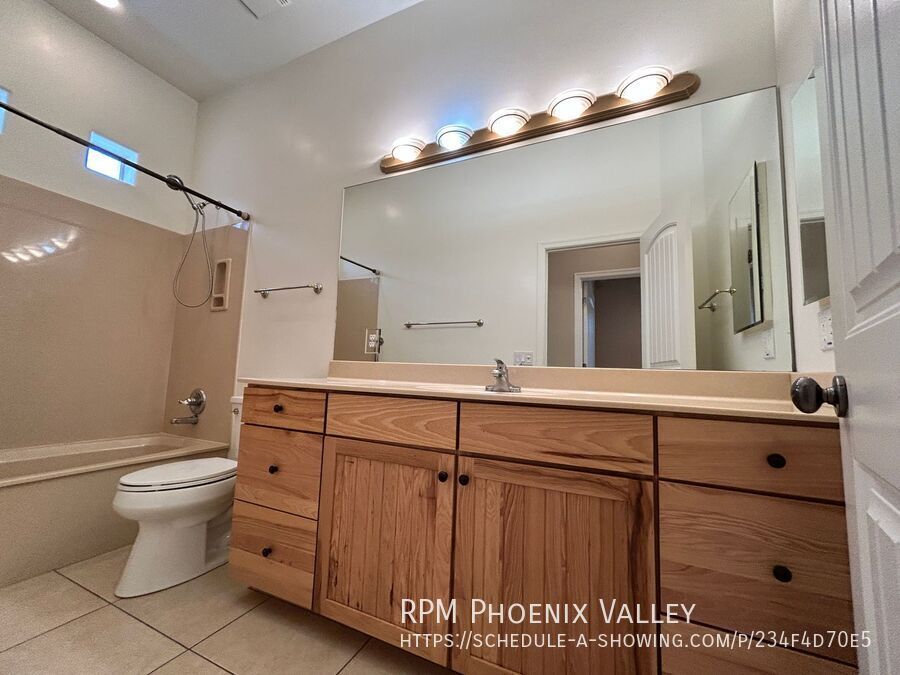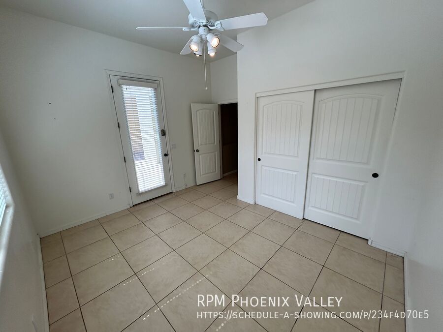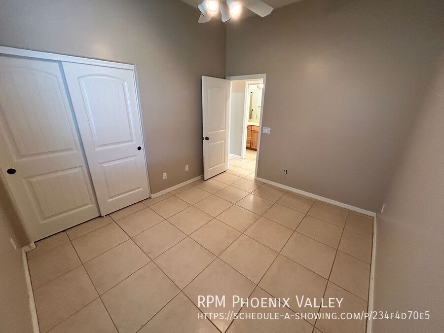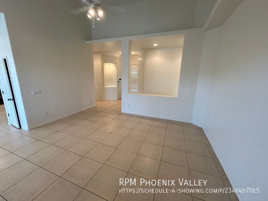 Entire home features bright larger tile with custom inlets and plantation shutters! Open concept main living area with formal dining, living and family room offering vaulted ceilings for awesome natural light. Kitchen features granite counter tops, recessed lighting, all black appliances including a gas stove, breakfast bar & walk in pantry. Large laundry room with built in shelving. Split floor plan; three nice sized guest bedrooms share guest bath. Decadent Grande primary suite with bay windows, private bath offering dual sinks, garden style tub, all glass shower, separate toilet room and enormous walk in closet with two separate sides! Incredible desert landscaping with Mountain views and gated heated pool; landscaping & pool services included. Home is solar for reduced energy costs. Base rent doesn't include $250/monthly water/sewage fee. Home is friendly to a max of two spayed/neutered pets with $500 per pet fee.