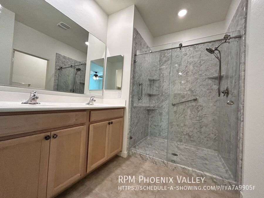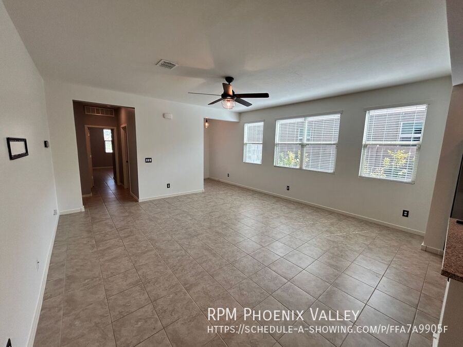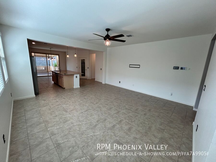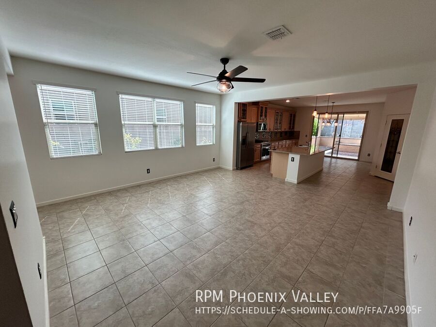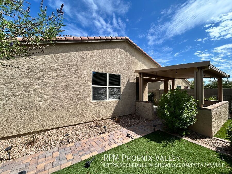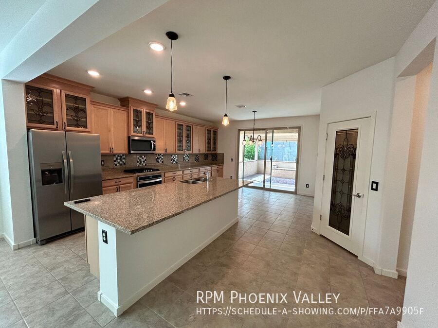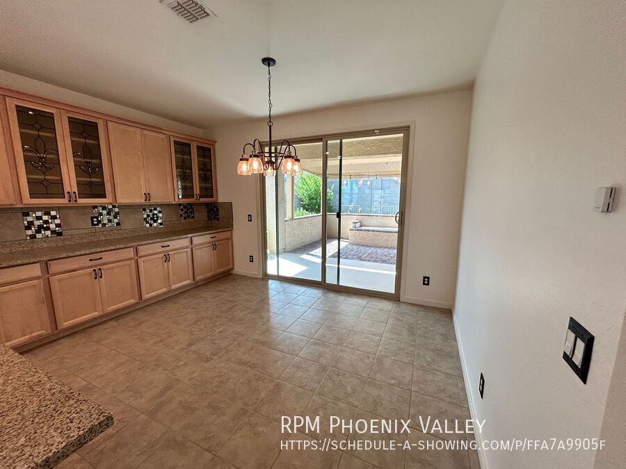 Welcome home to this updated 4-bedroom, 2-bath single-level house in beautiful San Tan Valley! The large great room flows into the eat-in kitchen perfect for entertaining. The spacious kitchen features granite counter tops, an updated tiled backsplash, lots of cabinetry for storage, stainless steel appliances including a countertop cook top, in cabinet oven, an island, and a walk-in pantry. The private primary suite is just off the kitchen and includes a huge walk-in closet, an updated bathroom with a tiled shower, dual sinks, and a private toilet room. There are three additional bedrooms that share a hall bathroom with double sinks. The laundry room has washer/dryer included and the 2 car garage gives you extra space for parking and storage. The backyard is your own private oasis, enjoy the extended covered patio and lush turf. It's close to Mountain Vista Community Park and San Tan Mountain Regional Park. Home is friendly to a max of two spayed/neutered pets with $150 per pet fee.