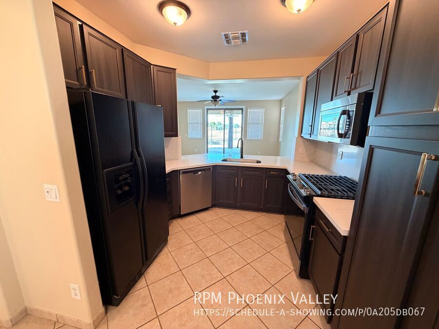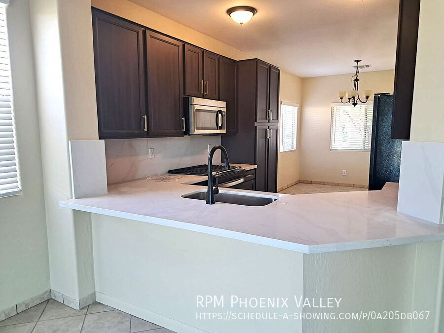 *$500 off the first full month rent!* Tastefully updated 3 bedroom, 2 bathroom residence in Greenfield Lakes offers a fantastic golf course location with a beautiful view fence. The home has been comprehensively upgraded with all new paint throughout and features a desirable split floor plan with no carpet. The kitchen is a standout, boasting a full renovation with brand-new quartz countertops, a contemporary backsplash, sleek stainless steel and black appliances, and modern bronze faucet. Just off the entry, you will find the two guest bedrooms, which share an updated full bath featuring new countertops, fixtures, and a new arched mirror. The private primary suite is situated in the rear of the home also got an update, offering a large closet and an ensuite with a dual vanity, tub/shower combo, new countertops, and fixtures. There is a dedicated laundry room with washer and dryer included, plus direct access from the 2 car garage. The rear covered patio is perfect for relaxing and enjoying the open golf course view. Max two spayed/neutered pets are permitted with an additional $500 per pet deposit.