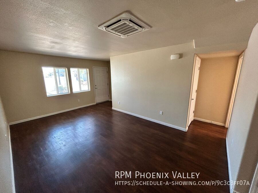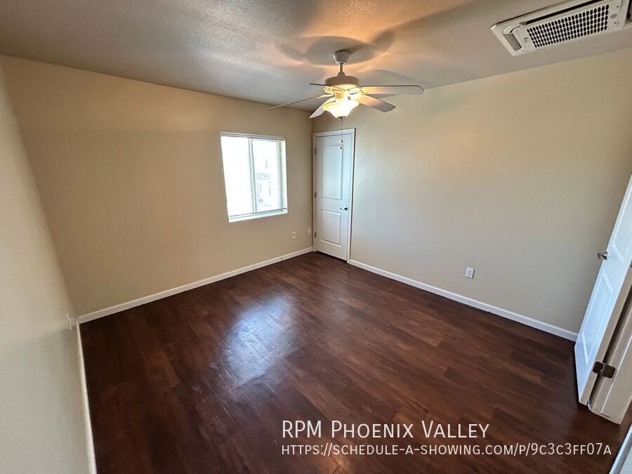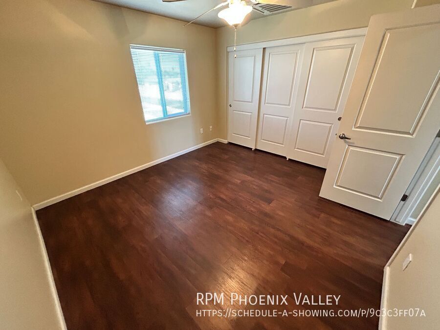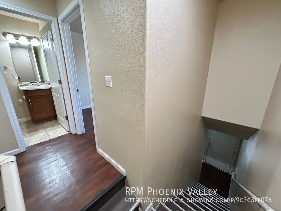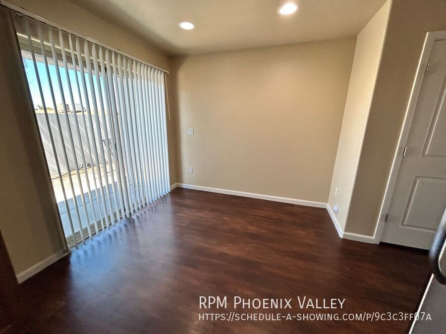 The first floor includes a sunny living room, a large den, half bath with pedestal sink & tile back splash, stacked washer & dryer and an eat in kitchen. Kitchen features decorative backsplash tile, recessed lighting and all stainless steel appliances! Wood plank flooring & tile throughout and NO carpets! Two nice sized bedrooms upstairs; one with a large three door closet. The shared hallway bath also with decorative tile back splash. Home is friendly to a max of two spayed/neutered pets with $350 per pet fee.