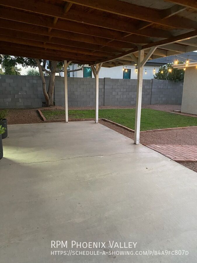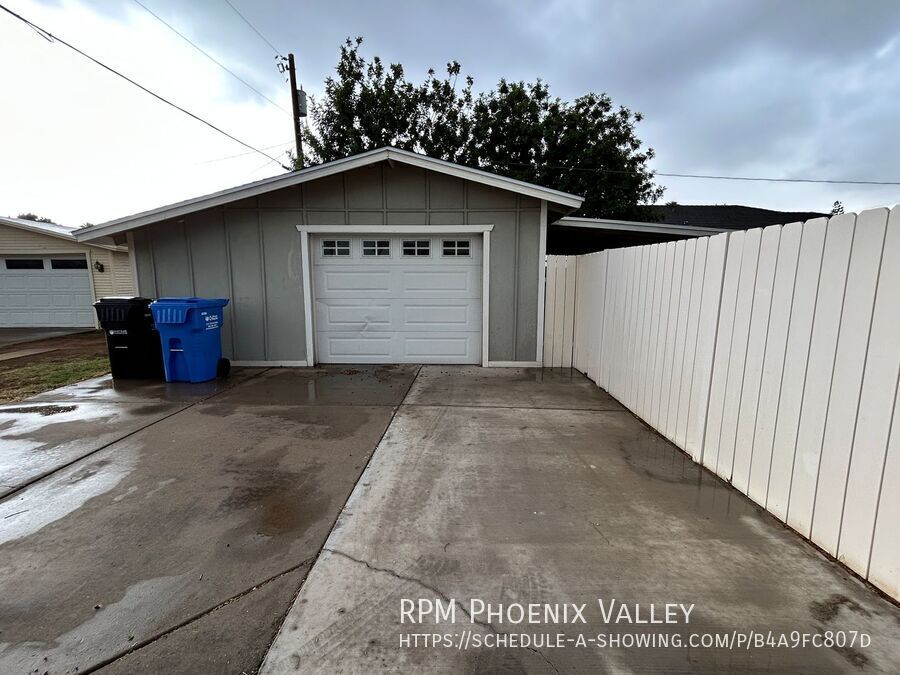Welcome to your new home! This beautifully remodeled 3-bedroom, 2-bathroom home combines modern design with everyday comfort. The kitchen has modern white shaker cabinets, quartz countertops, stainless steel appliances and a breakfast bar that opens to the living room, so you can entertain your guests while preparing meals. The primary suite includes a sleek bathroom with a spacious walk-in shower, carrying the modern gray tones throughout. Two additional bedrooms with ceiling fans, a full bath, and a laundry room round out the interior. Step outside to enjoy a large covered patio, basketball hoop, and a private backyard ideal for gatherings or relaxation. The detached garage has plenty of extra storage. Pets welcome! Up to two spayed/neutered pets allowed with a $350 fee per pet.