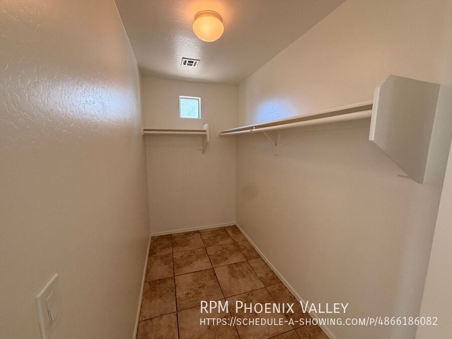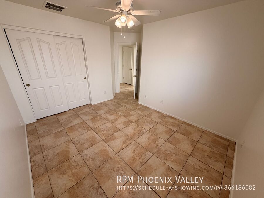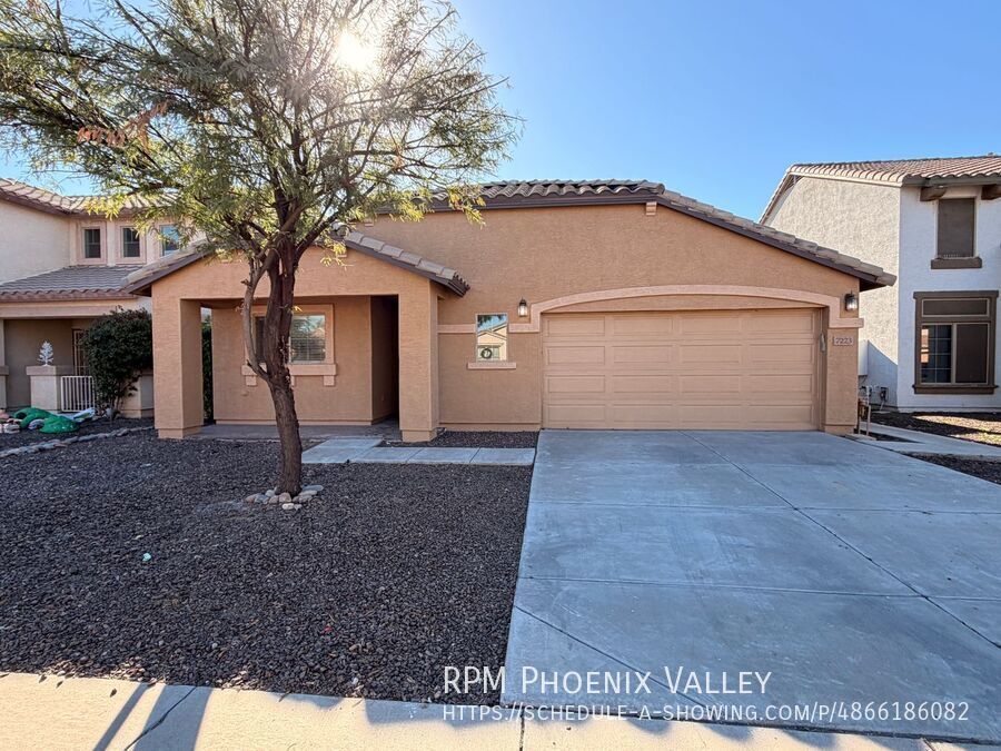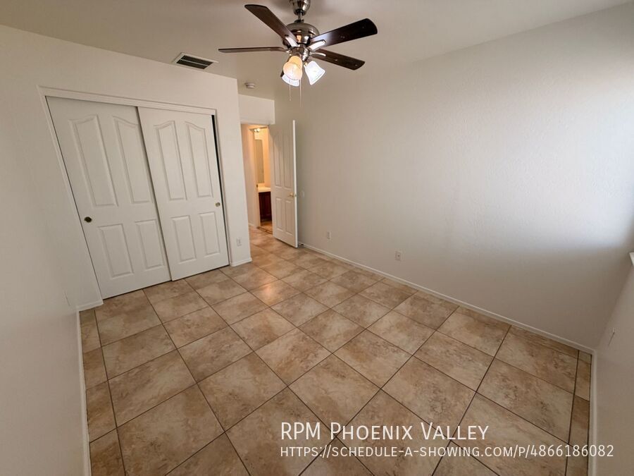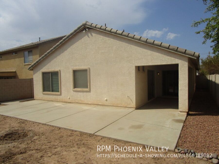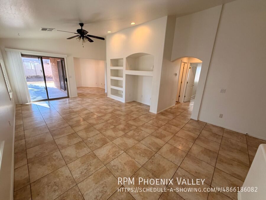 Welcome to this beautiful freshly painted 3-bedroom, 2-bathroom residence, where premium finishes meet exceptional convenience. The entire home features easy-to-maintain tile flooring, ensuring a carpet-free living environment. The main living room is accented by vaulted ceilings and showcases a unique, custom built-in shelf system and arched entertainment insert. The kitchen provides dark cabinetry, full stainless steel appliance package, expansive granite counter space for meal prep, connecting seamlessly to the dining area via a stylish low wall. The luxurious primary suite is a true retreat, featuring its own vaulted ceiling, a spacious walk-in closet, an en-suite bathroom with a double vanity, a deep soaking tub, a separate glass shower, and a private toilet room. The two secondary bedrooms share a hallway bathroom and has plenty of closet space. Beyond the interior, a sliding glass door opens to a private covered patio, which overlooks a massive, fully fenced-in backyard perfect for outdoor activities and relaxation. Additional amenities include fresh paint and ceiling fans throughout, a dedicated laundry room with hookups and extra storage, and a convenient two-car garage. This property is ideally situated with quick access to the 202 and I-10, placing shopping centers, restaurants, and local parks just minutes away. The home is friendly to maximum of two (2) spayed/neutered pets with an additional $350 deposit per pet.