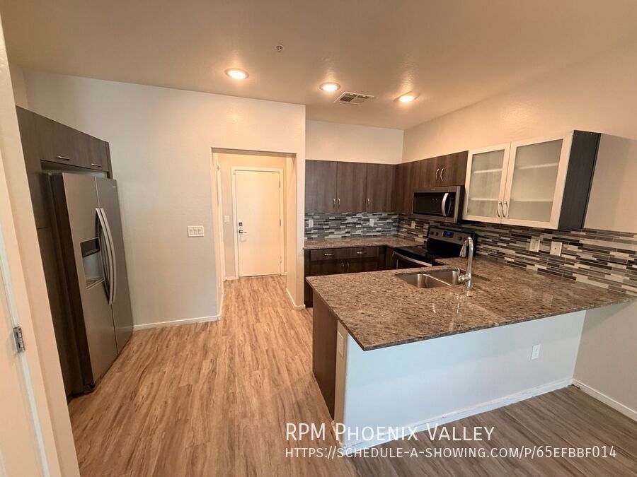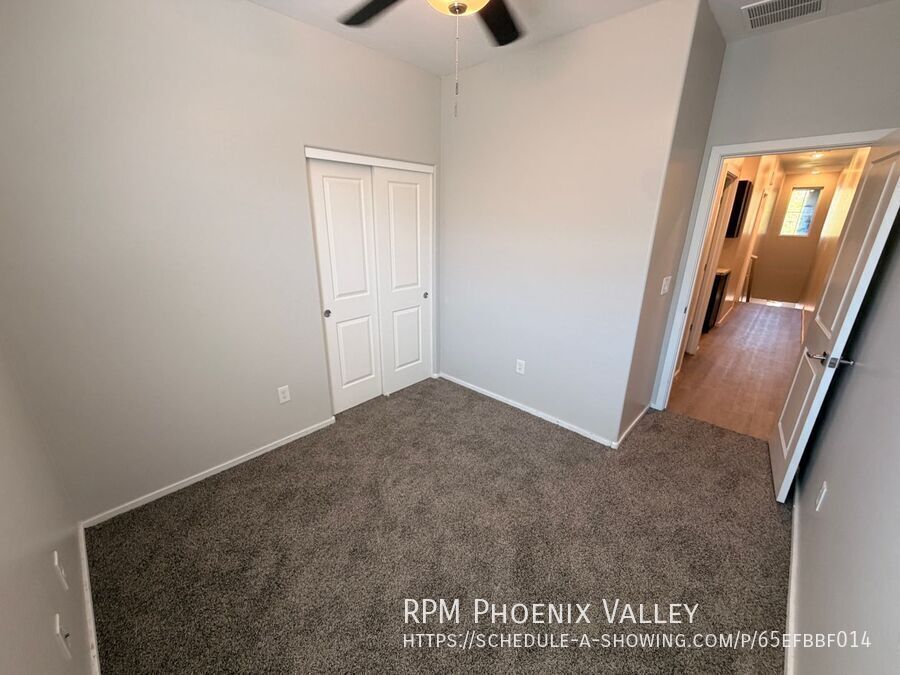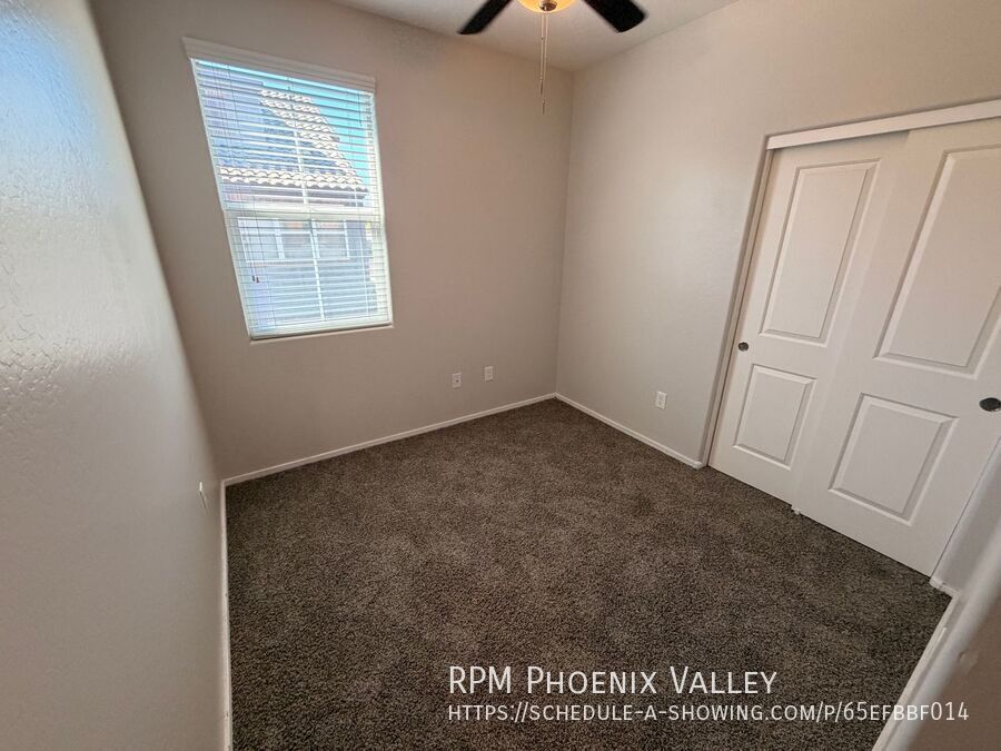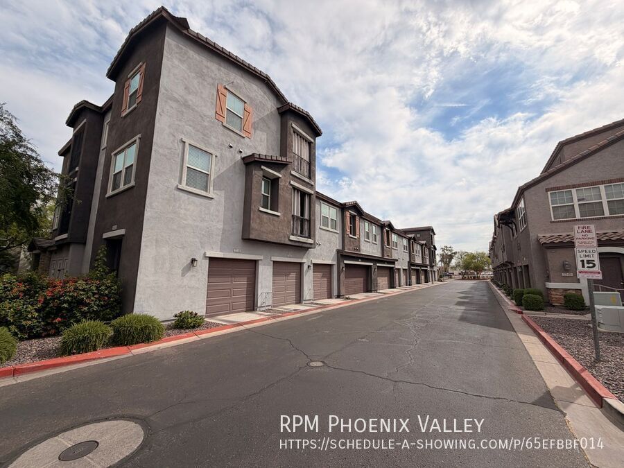 Welcome to this gorgeous 3-bedroom, 2.5-bathroom, two-level townhome located in the highly sought-after Copper Leaf Community. Thoughtfully designed with stylish finishes throughout, this home offers the perfect blend of modern elegance and comfortable living. The kitchen features sleek modern cabinetry, granite countertops, a convenient breakfast bar, stainless steel appliances, and a beautiful glass tile backsplash. The spacious primary suite includes a full bathroom and private access to a balcony, creating a relaxing retreat. Two additional guest bedrooms share a well-appointed hallway bathroom. Every room is equipped with ceiling fans for added comfort, and a washer and dryer are conveniently included. The kitchen cabinets and the light switch in the downstairs bathroom will be fixed prior to new tenant move in Ideally situated with easy access to the I-10 and US-60 freeways, this home offers a quick commute while being part of a vibrant and desirable community. Community pool. Don’t miss the opportunity to make this stunning townhome your next home! The home is friendly to maximum two spayed / neutered pet with additional $450 per pet deposit.