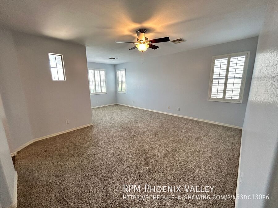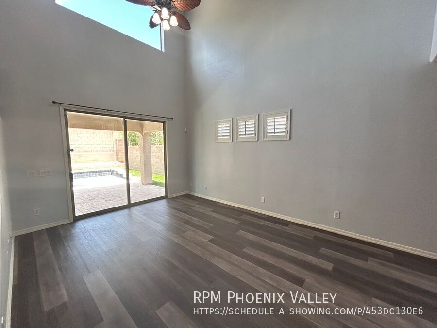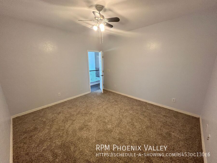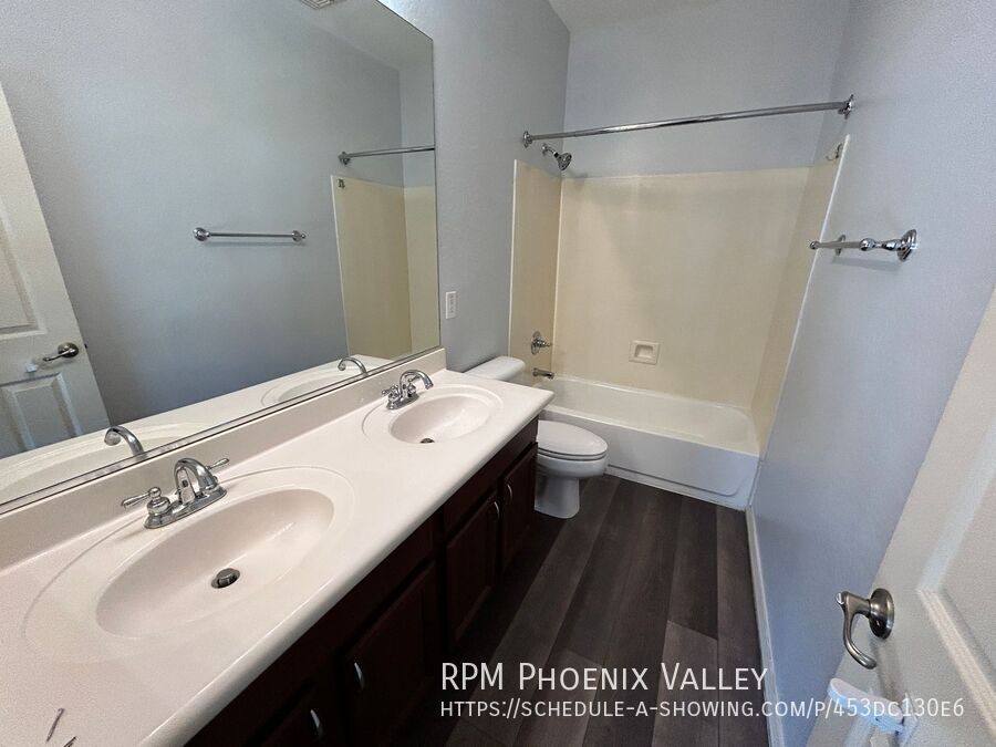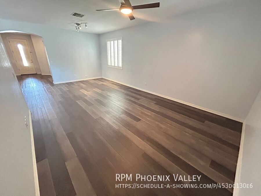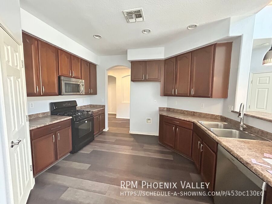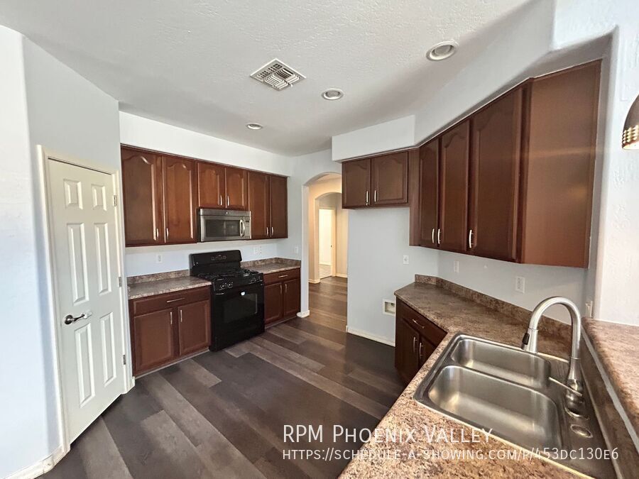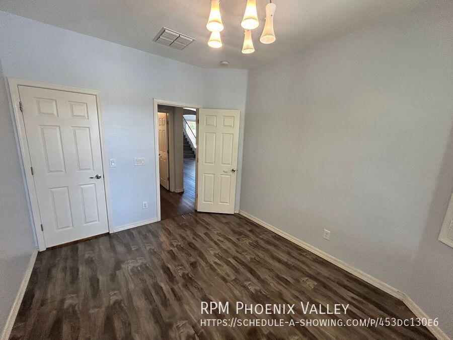 Full Bed + Bath Downstairs! Hard surface flooring everywhere but the bedrooms + custom *NEW* paint throughout! Downstairs offers a *FULL* bed + bath, separate den + open concept kitchen/living and dining area and full laundry room. Kitchen includes breakfast bar and *GAS* stove! Two additional guest beds upstairs both with 1 year old plush carpet share a guest bath with dual sinks. Large primary suite with sitting area, 1 year old plush carpet, private bath with dual sinks, separate toilet room, garden style tub, separate stand up shower, extra cabinets for storage and a walk in closet. Backyard includes sparkling pool with pool services included and artificial turf. Home is within walking distance to elementary school, Anthem shopping, parts and community center. Home is friendly to a max of two pets with $550 per pet fee. NEW WASHER/DRYER + FRIDGE TO BE INSTALLED AFTER NEW TENANT MOVE IN!
