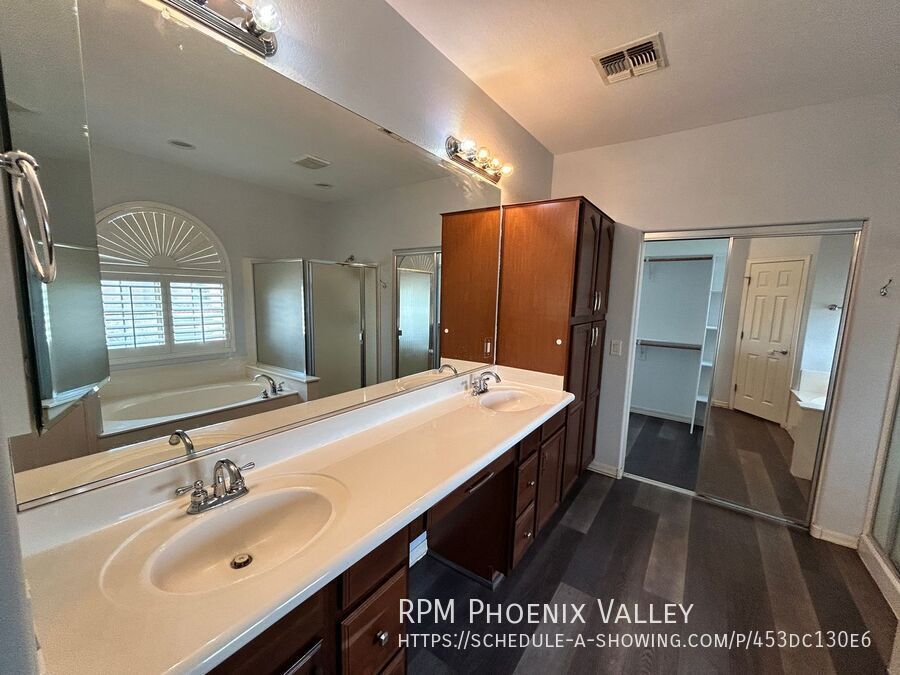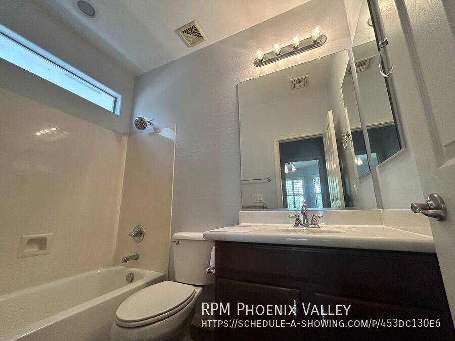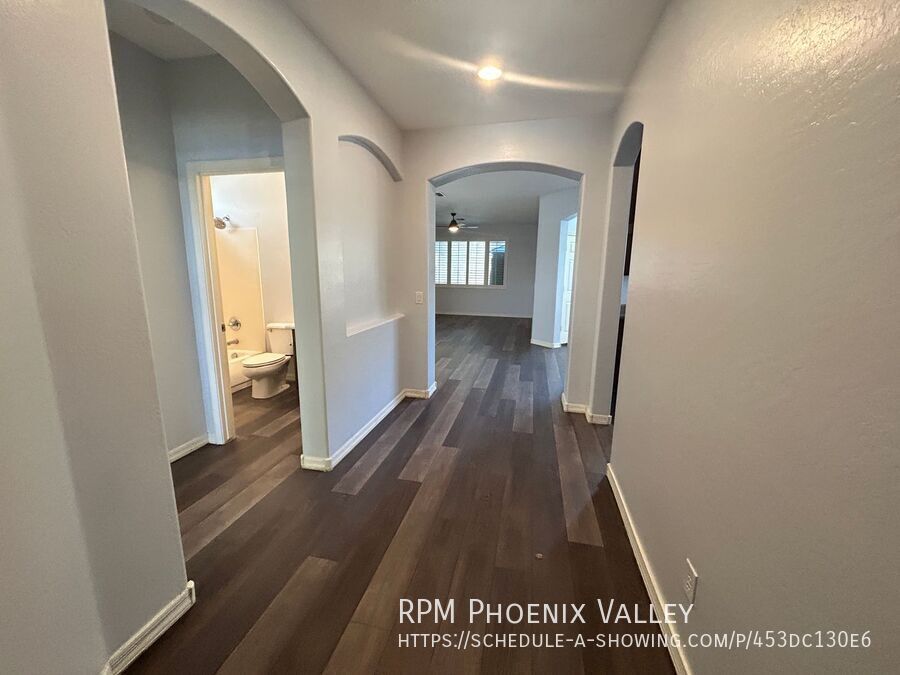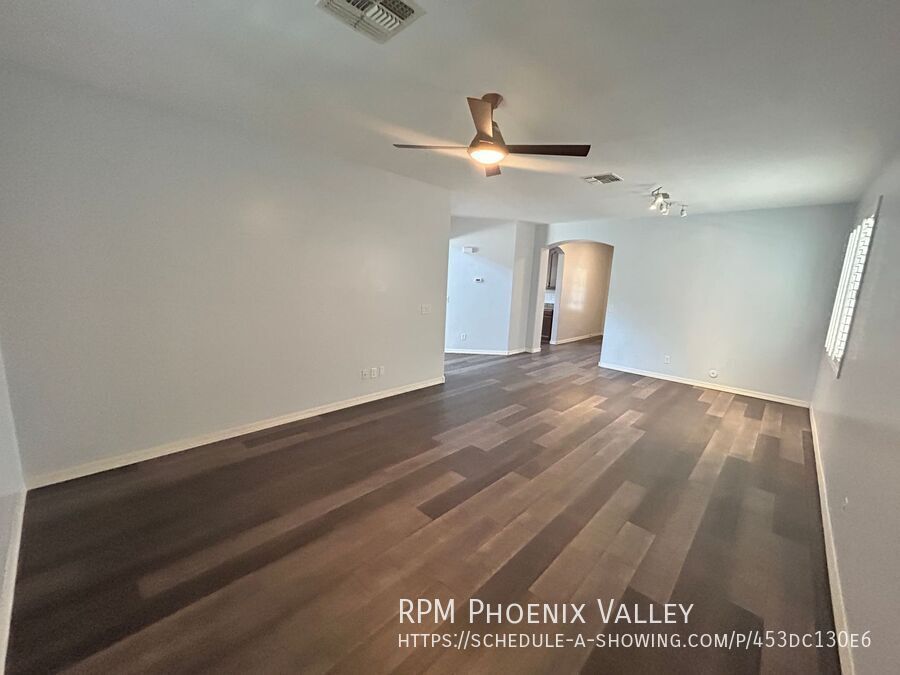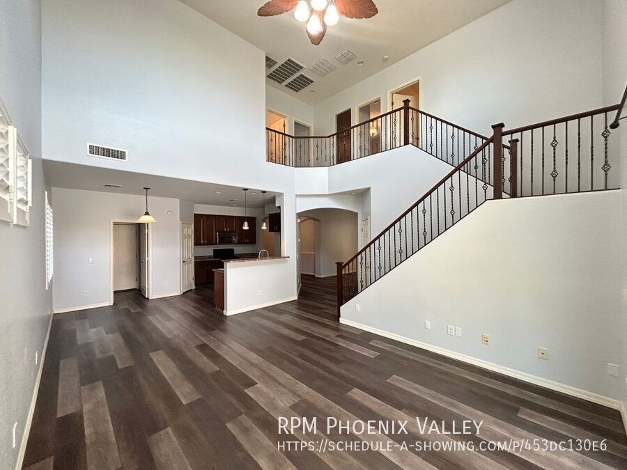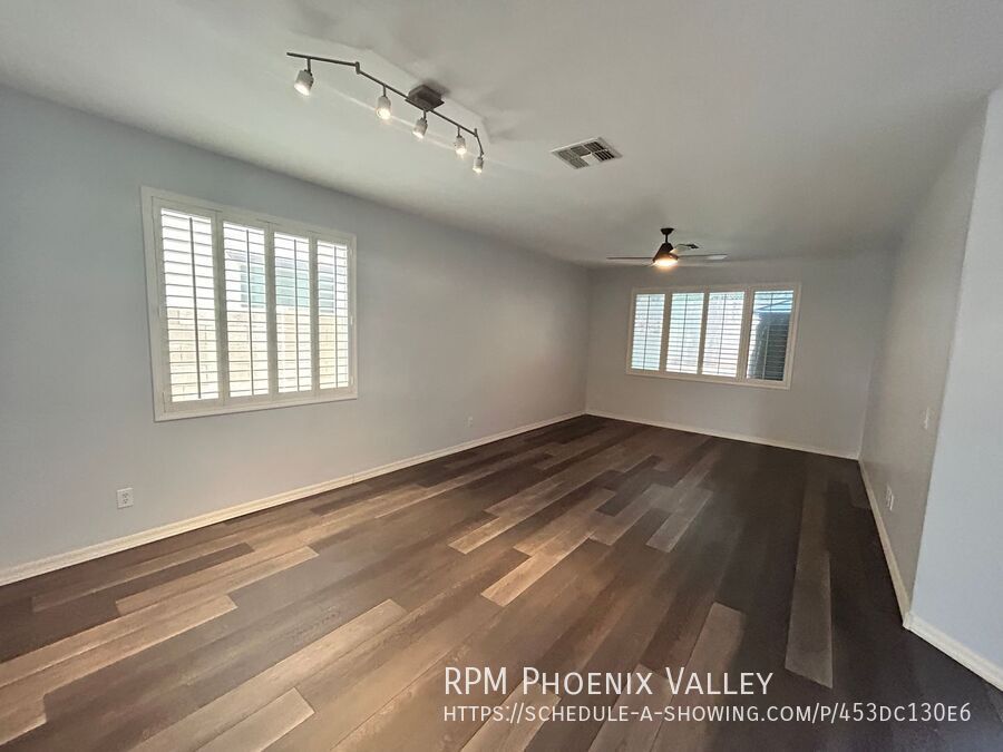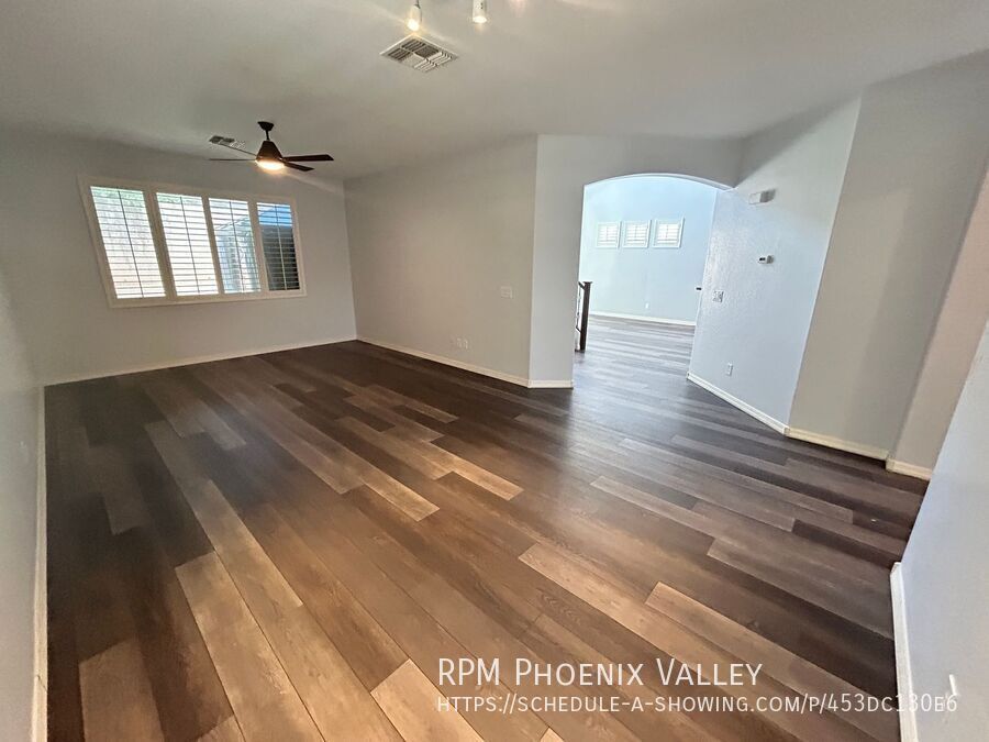 Full Bed + Bath Downstairs! Hard surface flooring everywhere but the bedrooms + custom *NEW* paint throughout! Downstairs offers a *FULL* bed + bath, separate den + open concept kitchen/living and dining area and full laundry room. Kitchen includes breakfast bar and *GAS* stove! Two additional guest beds upstairs both with 1 year old plush carpet share a guest bath with dual sinks. Large primary suite with sitting area, 1 year old plush carpet, private bath with dual sinks, separate toilet room, garden style tub, separate stand up shower, extra cabinets for storage and a walk in closet. Backyard includes sparkling pool with pool services included and artificial turf. Home is within walking distance to elementary school, Anthem shopping, parts and community center. Home is friendly to a max of two pets with $550 per pet fee. NEW WASHER/DRYER + FRIDGE TO BE INSTALLED AFTER NEW TENANT MOVE IN!